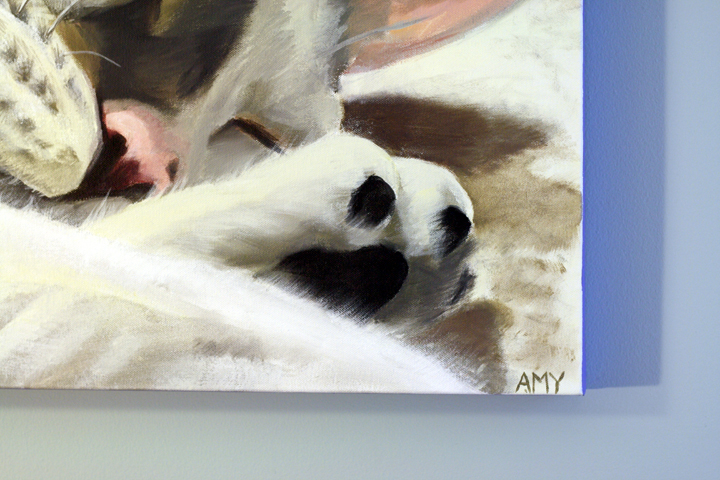 We affectionately refer to her as “foot face,” and I think you can see why from the pose. When she sleeps, she often has one or both of her back feet in her face. Sometimes her front paws too.