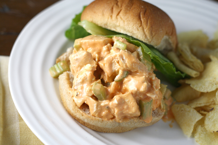I thought chicken salad would be great, but to kick it up a notch, I added the most delicious sauce on the planet- Frank’s Buffalo Sauce. I seriously could eat that sauce every day on anything.