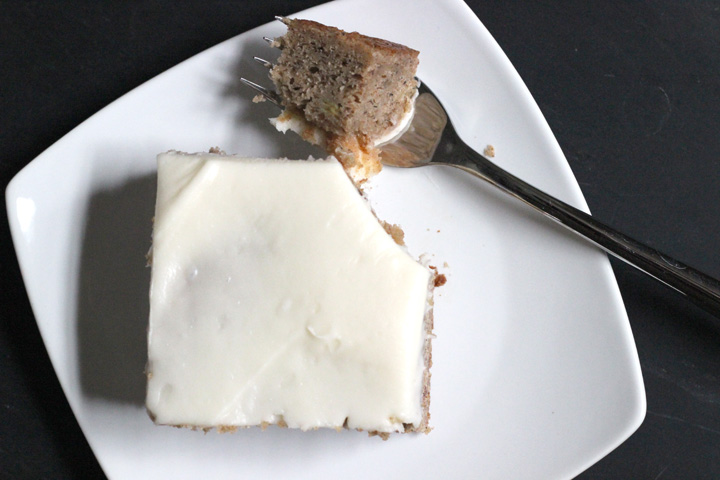 Honestly, the result was amazing! It definitely helped that the bananas already added moisture, plus I upped the sour cream amount from the original recipe. And it never hurts to have a creamy cream cheese frosting on top.