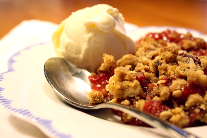 Rhubarb Strawberry Crisp– with a scoop of vanilla ice cream, it’s summer dessert perfection!