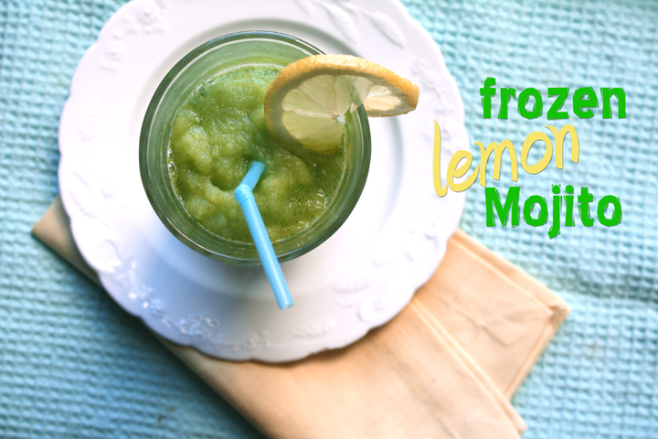 Frozen Lemon Mojito– SOOOO good and so refreshing! Can easily be made without the alcohol. Just add more water.