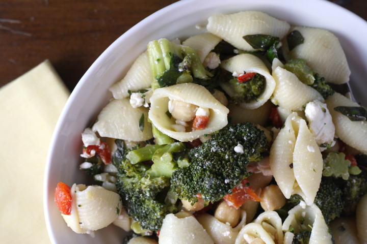Pasta Salad with Broccoli, Feta, Capers and Chickpeas