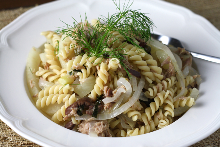 Anyway, since I got sent this tuna, I didn’t want to just make a boring old tuna salad. Nate has been training for the NY marathon (it’s this weekend!) so every Friday is pasta day to fuel his long weekend runs. I decided to make a pasta that incorporated the tuna. It’s kind of based on the flavors of a sandwich he loves at ‘WichCraft Sandwiches.