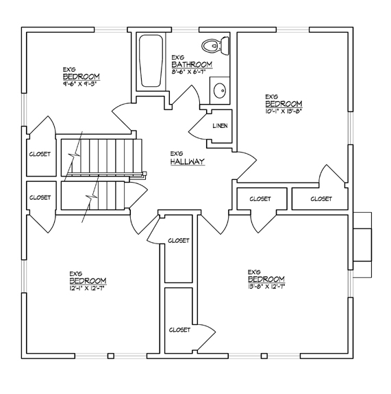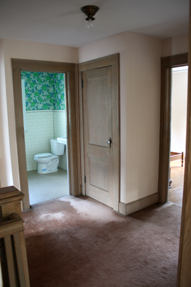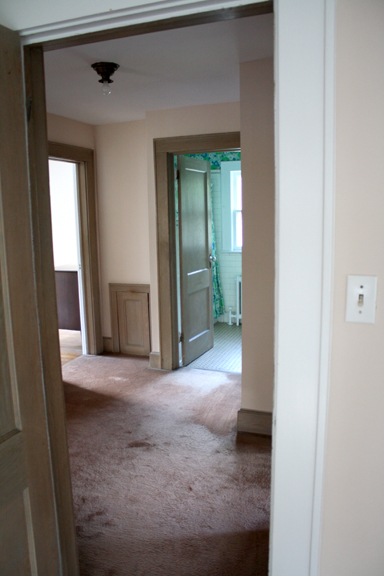Right now the second floor has 4 bdrooms (one is miniscule- the top left) and one bathroom. We’re going to turn it into three bedrooms and 2 full baths, and then put another bed/bath on the third floor (currently a walk-up unfinished attic). One of the bed/baths will be a master suite with a walk-in closet!