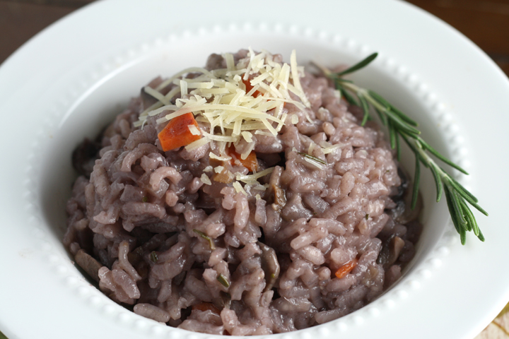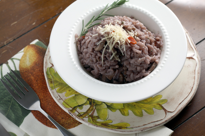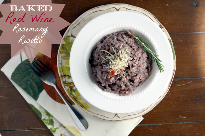 Baked Red Wine Rosemary Risotto with Mushrooms