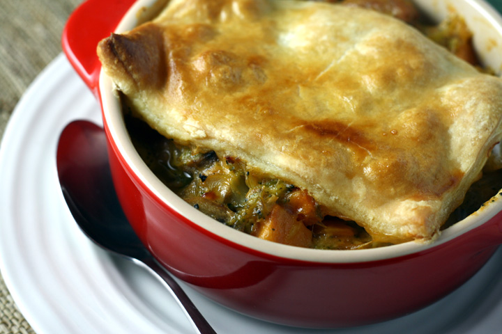 Sausage, Sweet Potato and Smoked Cheddar Pot Pie (lower cal)