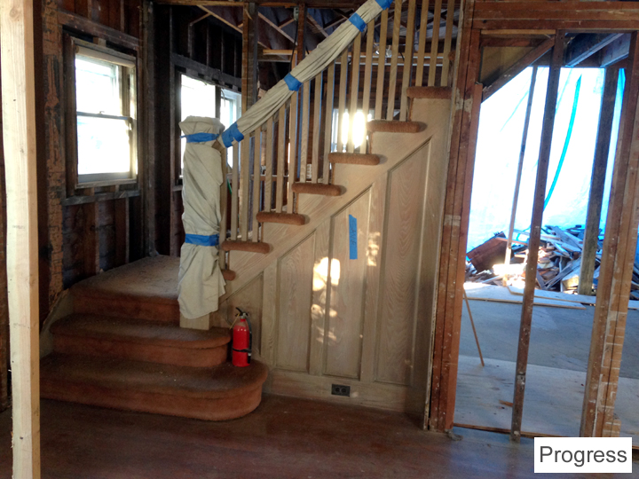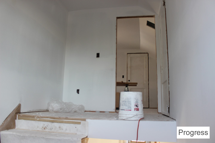 I don’t think I ever showed a before pic of this, but there used to be a closed door leading up to the attic…and now it’s a nice bright, open stairwell!