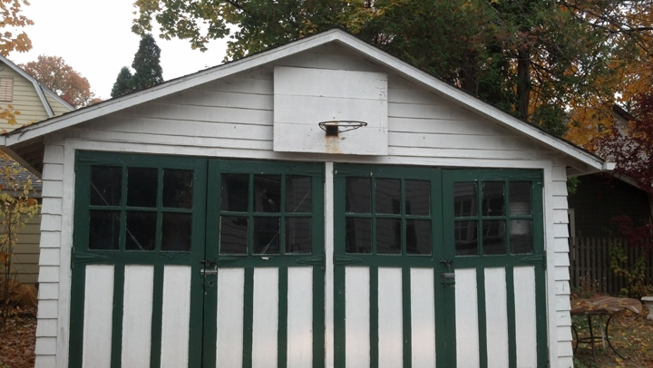 Anyway, as much as I would love to keep these awesome doors, we really don’t want to have to get out of the car and open them every time we want to pull inside- there is currently no electricity out to the garage. Can you believe the little 96 yr old lady who sold us this house used to get out and open those doors??