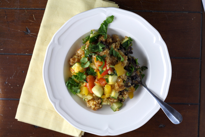 Anyway, I added zucchini to this because it’s in season and just seems like it belongs. I went light on the cheese on top because I ran out, but feel free to make it as cheesy as you’d like. It’s delicious topped with salsa and sour cream and served with some tortilla chips!