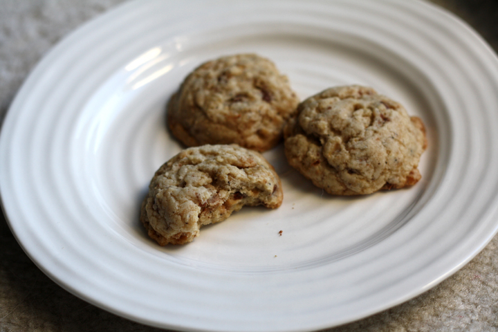 People in the food blogging world have been obsessed with it for quite some time but I never really got into the whole trend. I thought I’d add it to basic oatmeal cookies, though, to give them a little something special. I also threw in some toffee bits, because why not.