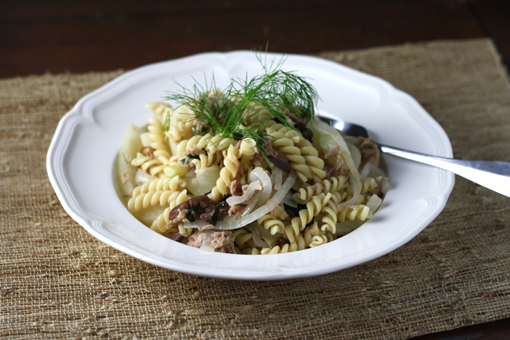 Anyway, since I got sent this tuna, I didn’t want to just make a boring old tuna salad. Nate has been training for the NY marathon (it’s this weekend!) so every Friday is pasta day to fuel his long weekend runs. I decided to make a pasta that incorporated the tuna. It’s kind of based on the flavors of a sandwich he loves at ‘WichCraft Sandwiches.