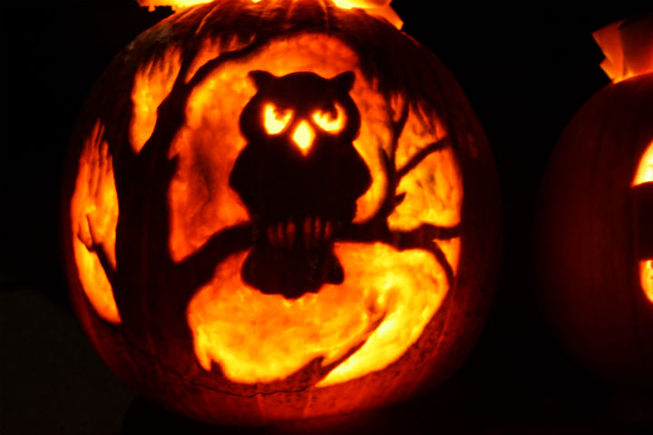 - When you think you’re done, take one of those pumpkin scooper tools they sell in the pumpkin carving sets and scrape the inside of the pumpkin behind your design as much as you can. This will ensure that there isn’t much flesh between the inside and your “lightest” areas. Your design will show better this way because when you put the light inside, it will be able to shine through best.