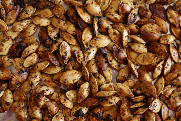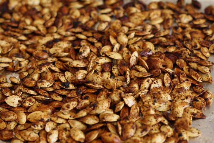 Last year I saw a Rachel Ray recipe that recommended boiling the seeds before roasting them. I decided to give it a try and they came out great! So I thought I’d share that recipe with you today. Enjoy!