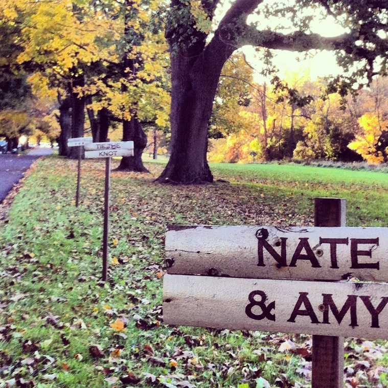 I put several non-directional signs leading down the driveway that said “Amy & Nate” “Tie the Knot” “10-21-12 <3.” They were spaced about 10-20 feet apart.